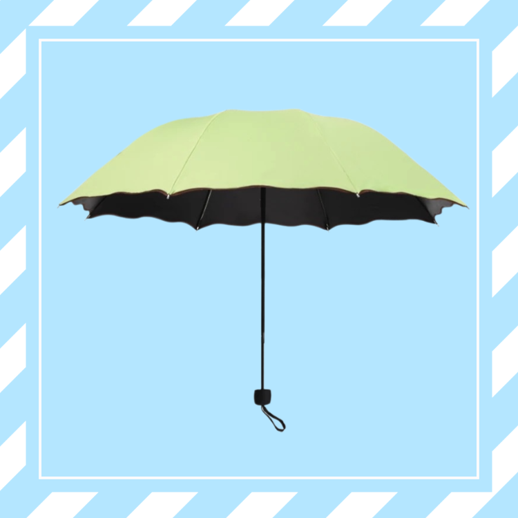 Paraguas plegable resistente al agua con diseño floral, doble capa de goma negra, para sol y lluvia
